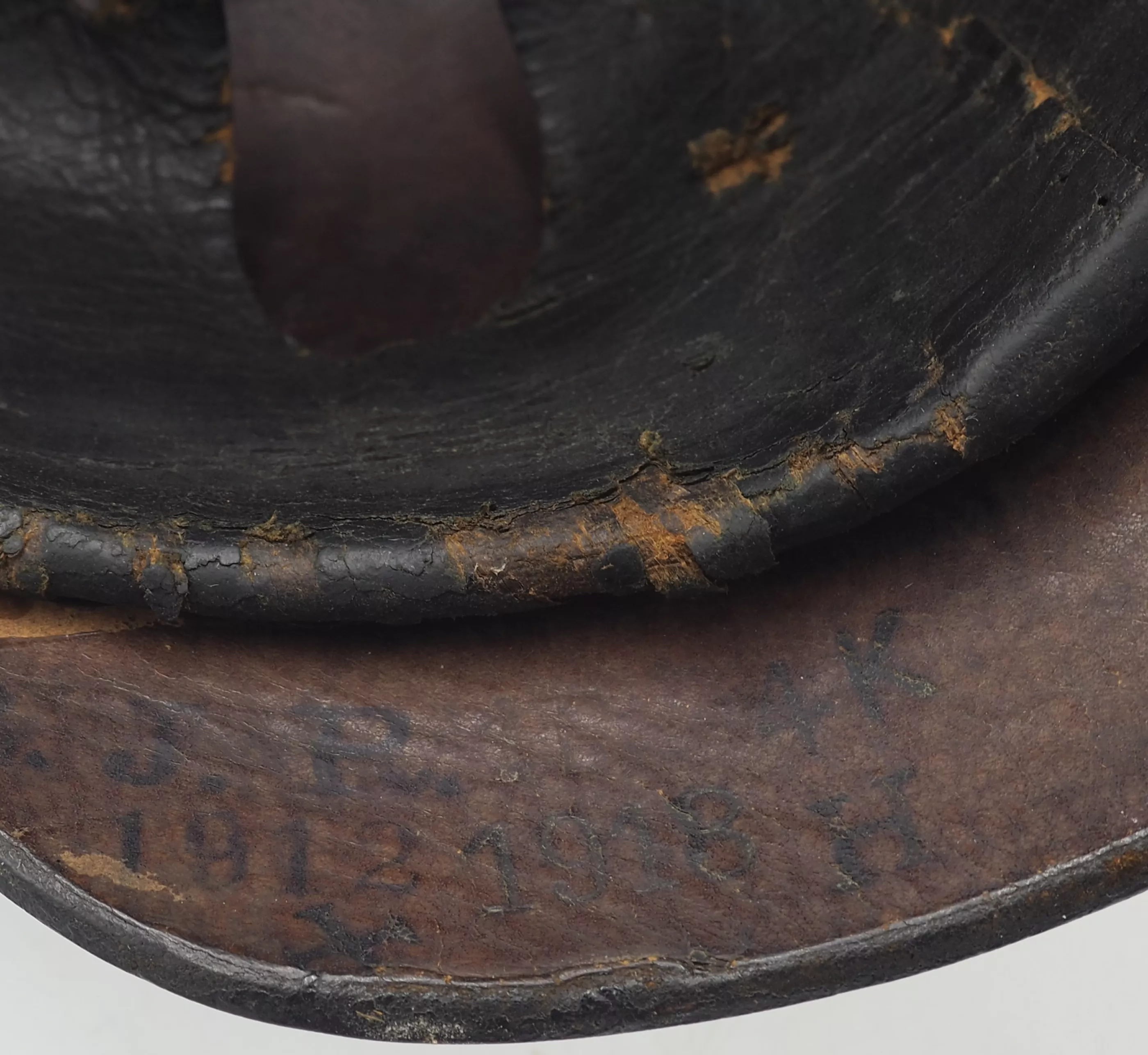 Hessen 115th Lifeguard Infantry Regiment (The Grand Duke of Hessen Regiment) – Enlisted Man – Model 1897. Recently acquired from a US Collector. Black lacquered leather with silver metal trim. The helmet body is in excellent condition with firm stitching and no extra holes in helmet body. Inside black EM style liner that is in excellent condition. Inside leather visors have illegible markings (see photo). German Silver metal trim that was left untouched/uncleaned as found.