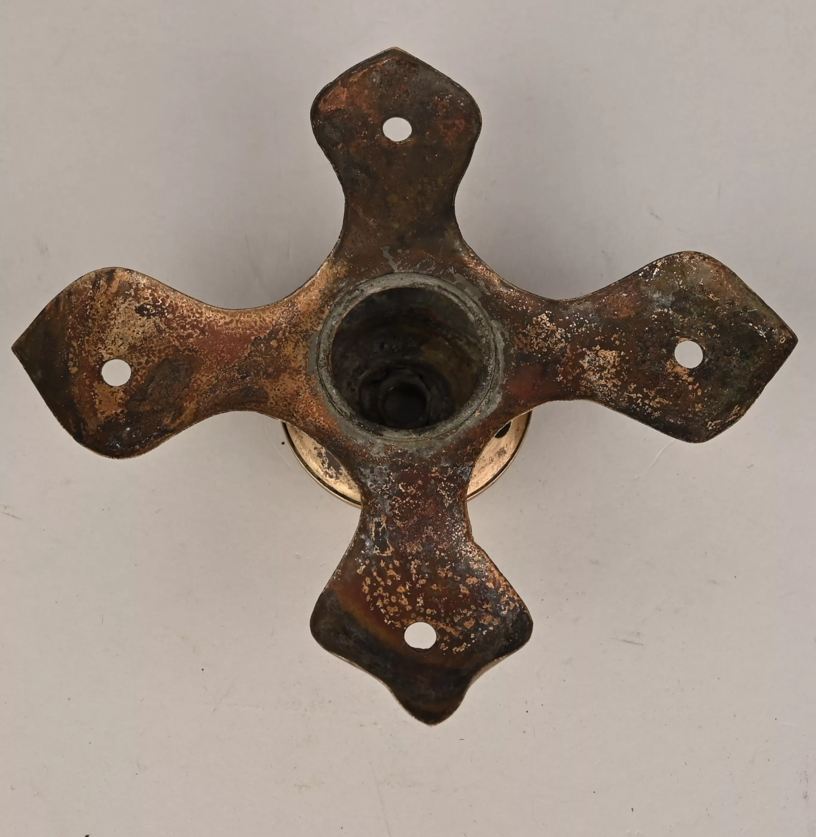 Rare Hessen helmet top for Enlisted Man with spike that unscrews. Hessen type Equilateral cross base with some oxidation deffects (maybe old battelfield dug out) but generaly very sound. Spike top is fixed separtely and unscrews. A seldomely found part to find in good condition.