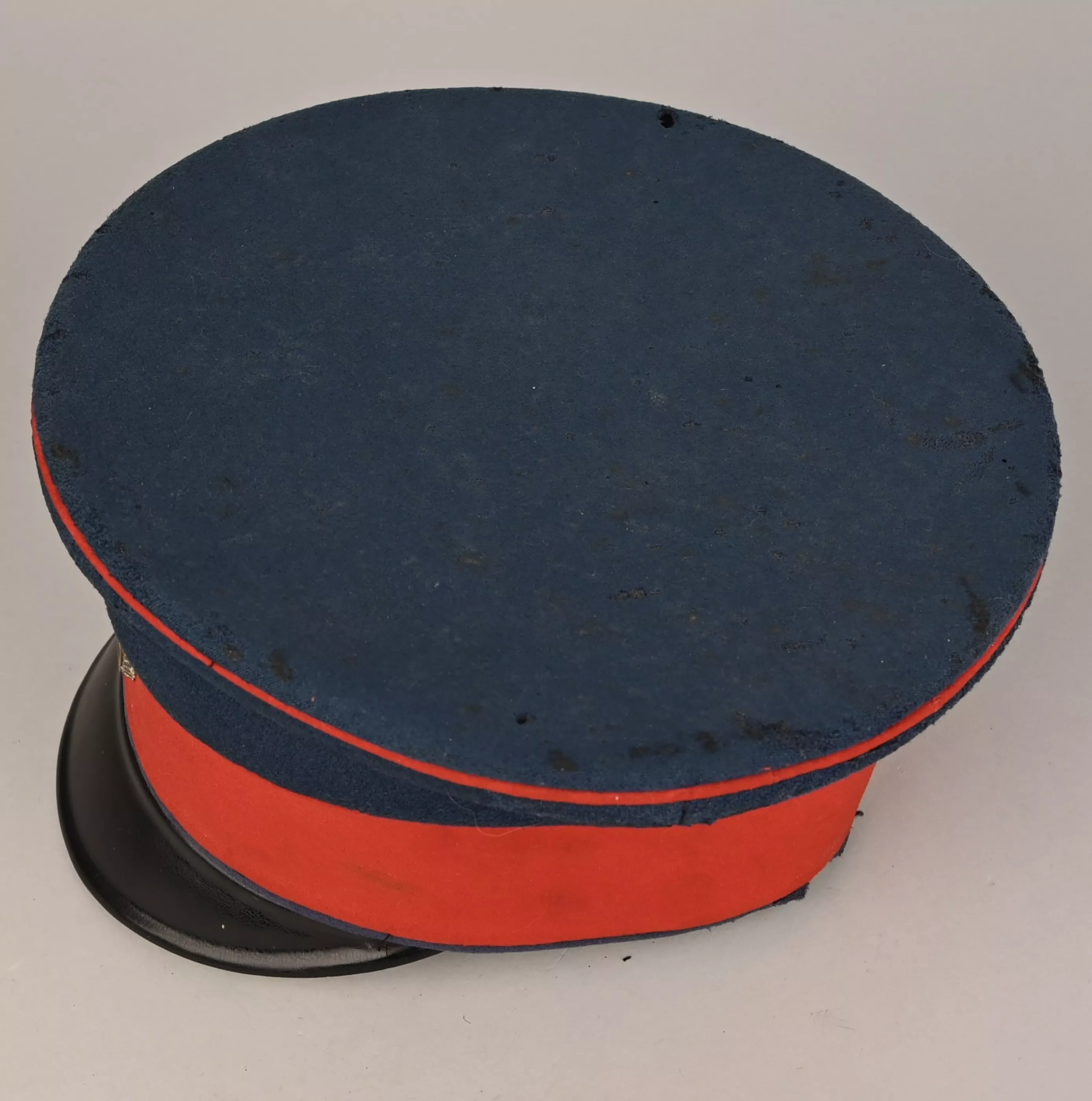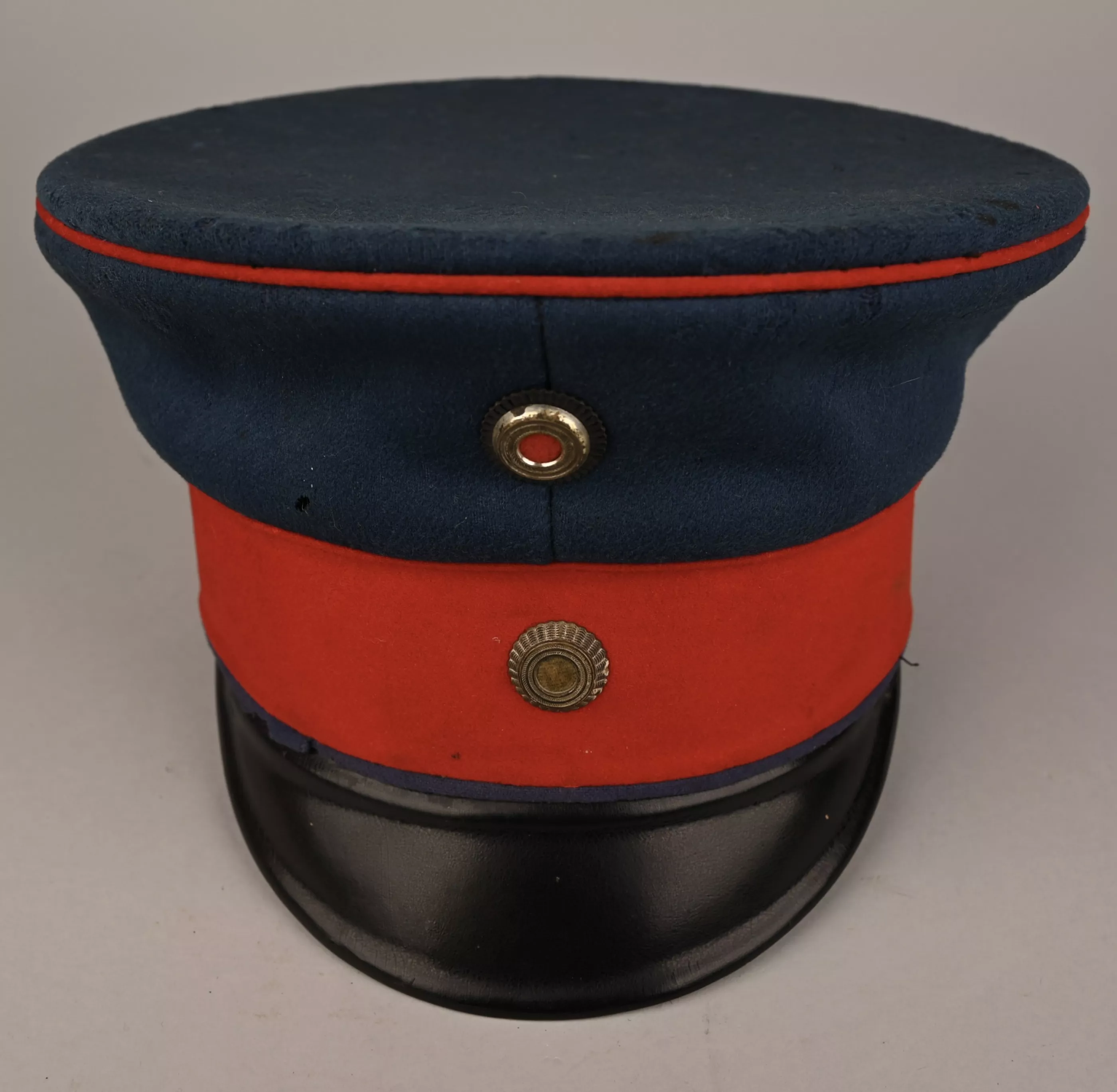 Tall version "Schirmmutze" for a Bavarian Officer. Inside the Black silk lining are his Initials "W.M" and the Baronial or Freiherr Krone. Dark blue Visor with some moth damage (see pictures) and red band/piping. Overall shape of the visor is excellent. Black visor, white underneath. Both Reichs and Bavarian Cockades.