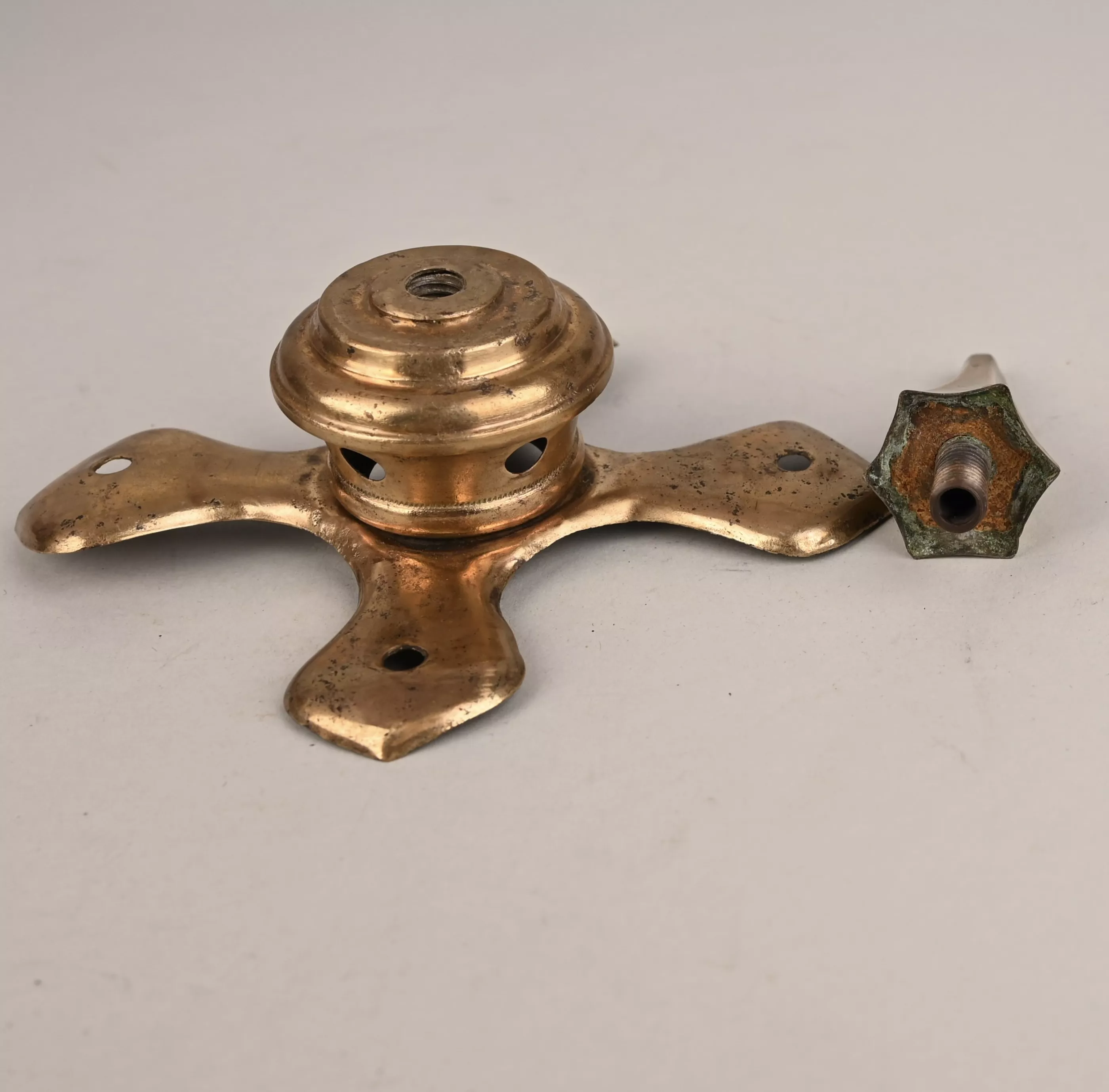 Rare Hessen helmet top for Enlisted Man with spike that unscrews. Hessen type Equilateral cross base with some oxidation deffects (maybe old battelfield dug out) but generaly very sound. Spike top is fixed separtely and unscrews. A seldomely found part to find in good condition.