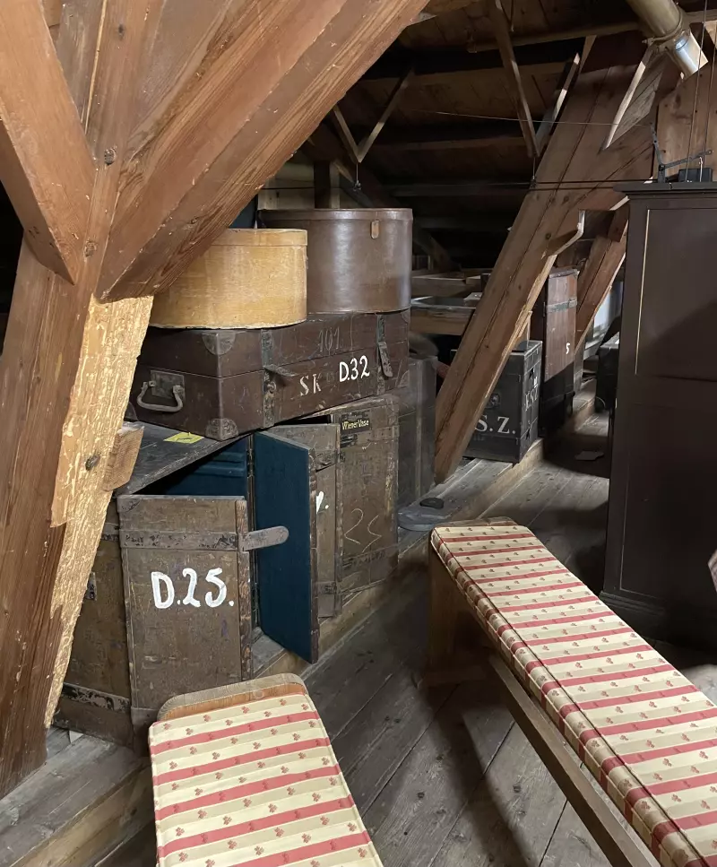 The curator took us up to the upper floors to see the wonderful collection of the Kaiser's military items. As Remy and I are collectors, this made our hearts RACE. In one room, on a table was laid out a wonderful display of Spiked Helmets, Epaulettes, Cartouche Boxes, Orders and 4 of the Kaisers Marshall Batons. With white gloved hands, the curator carefully showed us the many items on display. We carefully examined the Prussian Guard Artillery helmet. The exterior is similar to fine quality helmets we know, but the interior is uniquely made for the Kaiser. The all white interior silk is made in a circular pattern like an elegant men’s fedora and is bullion embossed with the Royal Crown and “W” monogram. All the helmets belonging to Kaiser Wilhelm had a similar design and monogram. We were shown selection of oversized Epaulettes were in mint condition with bright bullion cording. The curator then showed us the fantastic Marshall Batons that were presented to the Kaiser. Moving on to the second room we saw a number of armoires that were stuffed full of carefully bagged protected uniforms. As the bags were opened, we were presented with the Kaisers uniforms (with the shortened left arm) from a multitude of different regiments. The quality of cloth and the near MINT condition of each uniform displays how carefully they have been cared for by the House Doorn curators. After uniforms, we were shown a selection of fantastic presentation swords. Finally we were shown the Kaisers helmets from the Guard Machinegun Unit, the 1st Guard of Foot – 1st Battalion, 2nd Kurassier Regiment, Guard Uhlan Regiment and several others. Each helmet has the beautiful white silk headliner with embroidered monogram. Exiting the attic room we saw glass fronted armoires displaying full uniforms including headgear. A GDC Spring Parade Cuirass with a selection of Rink Kragen were displayed. There was so much we were not able to take it all in. Before exiting the house we viewed the Kaiser’s bedroom where he died in 1941. What struck Remy and I was how simple the bedroom was. We understood that Kaiser Wilhelm II was a mortal man just like us.