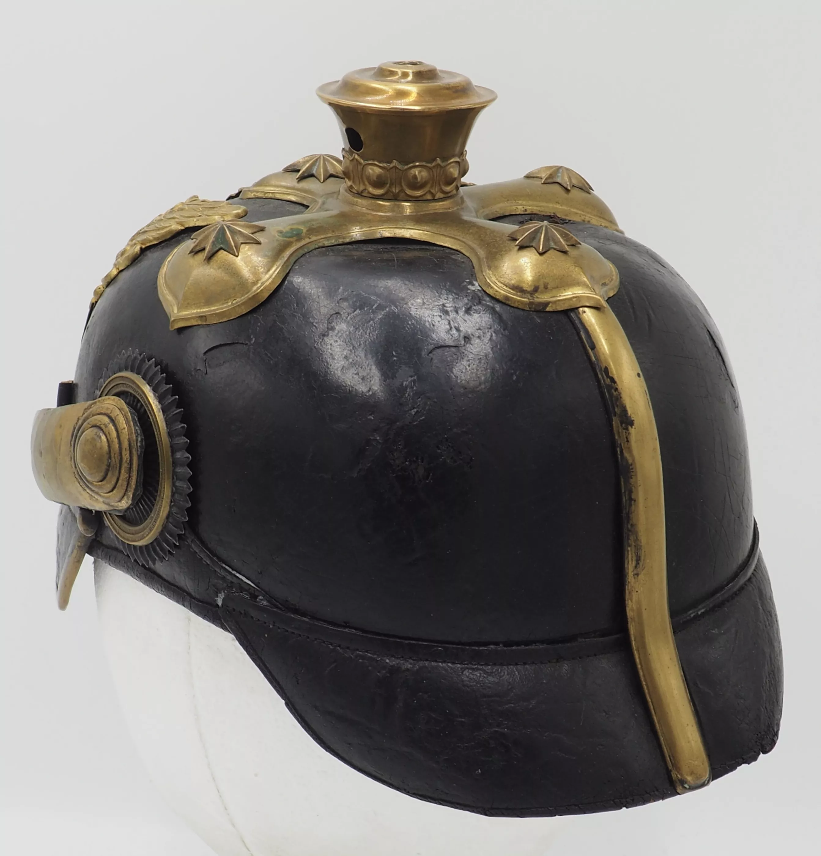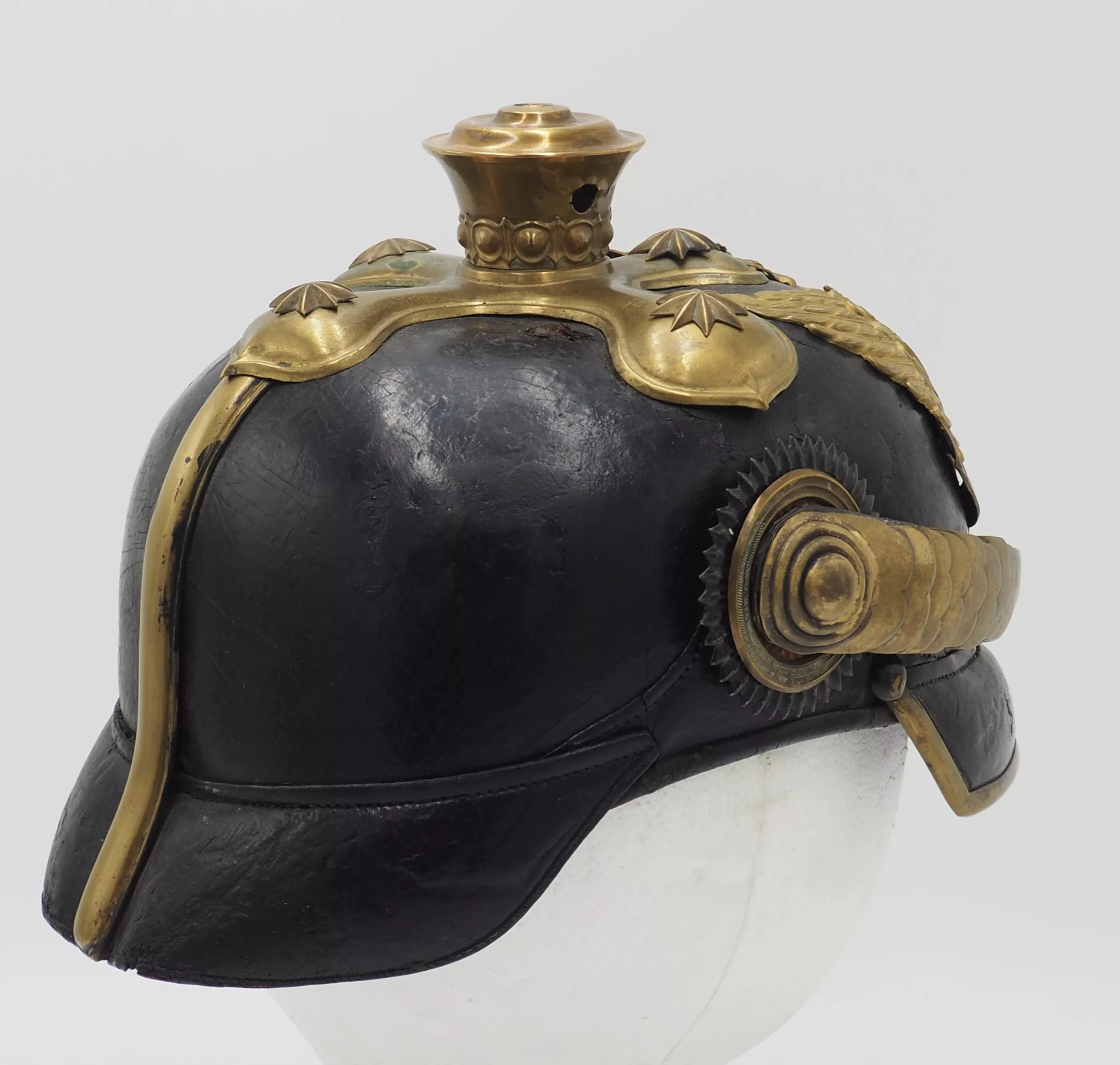 This helmet shows real age and use. It is a genuine and untouched Hannoverian 9th Dragoon officer. Bargain priced.
