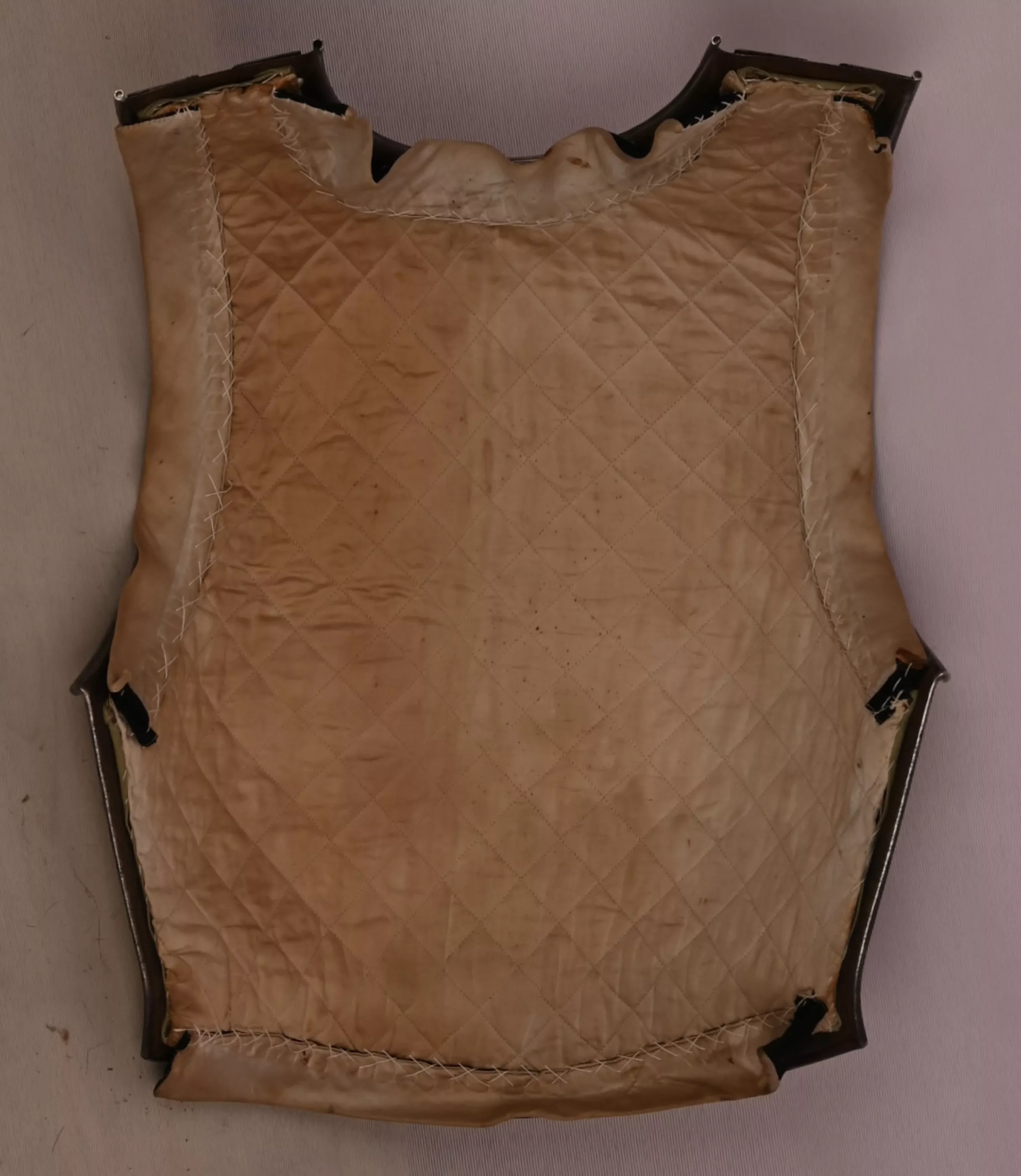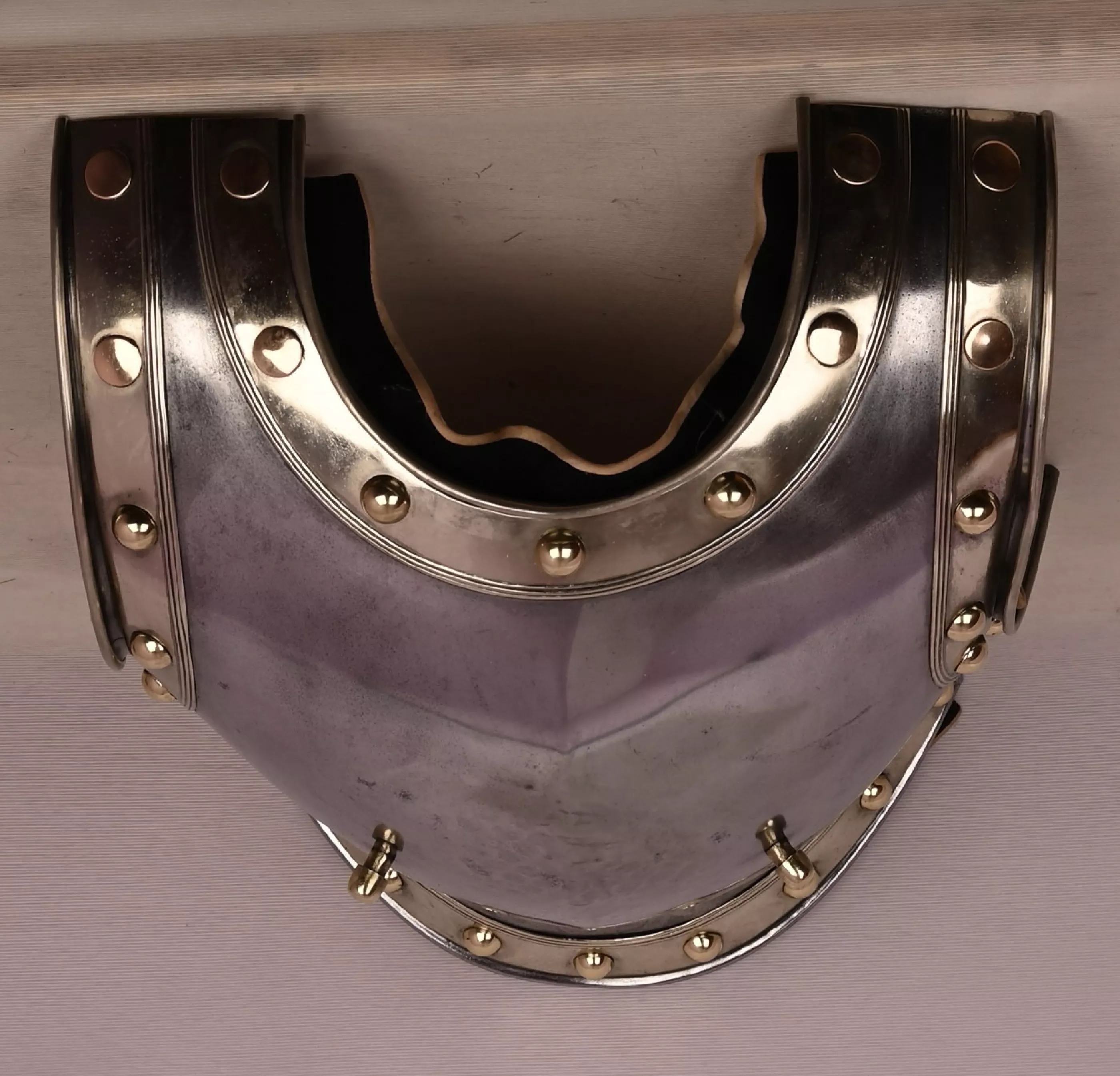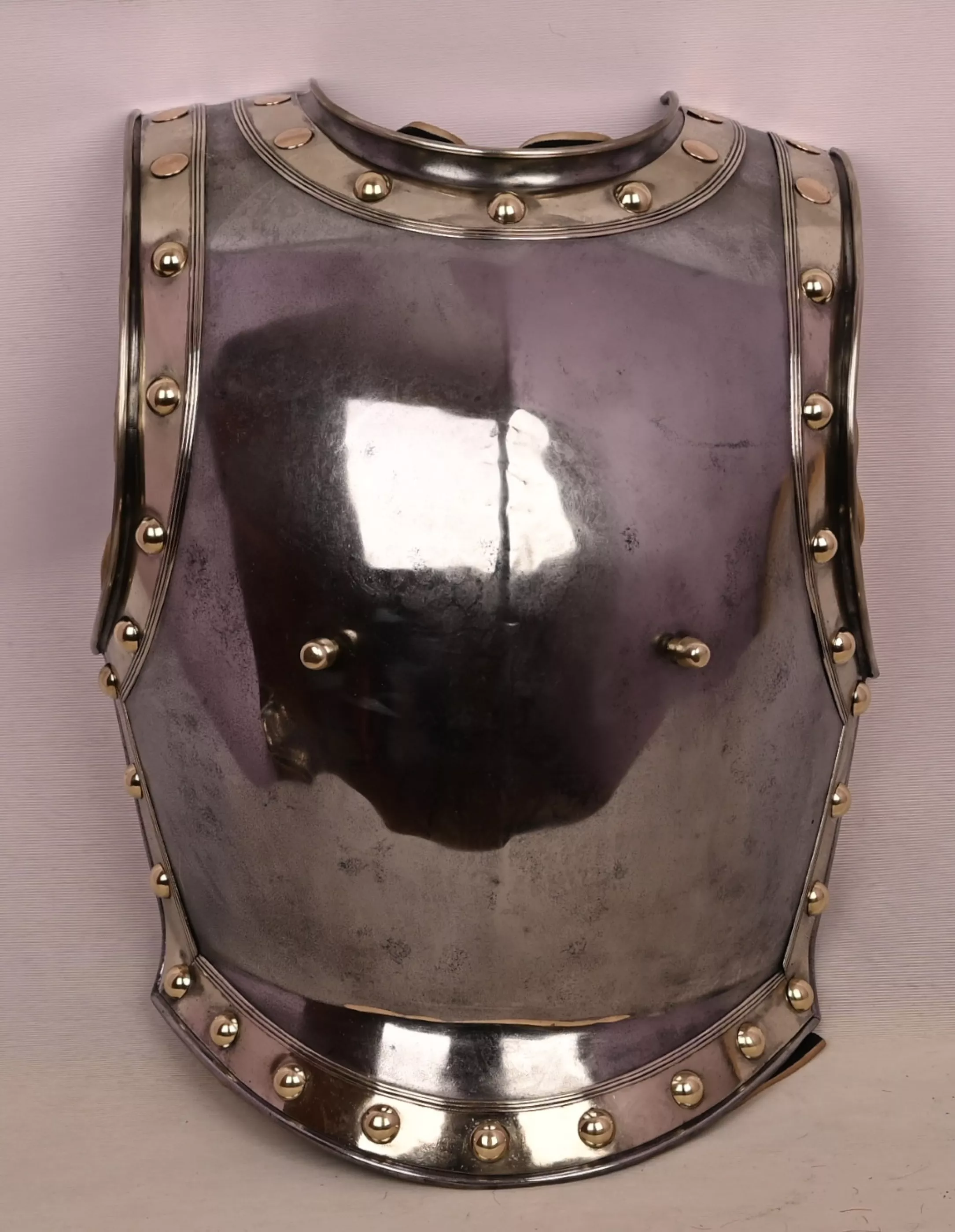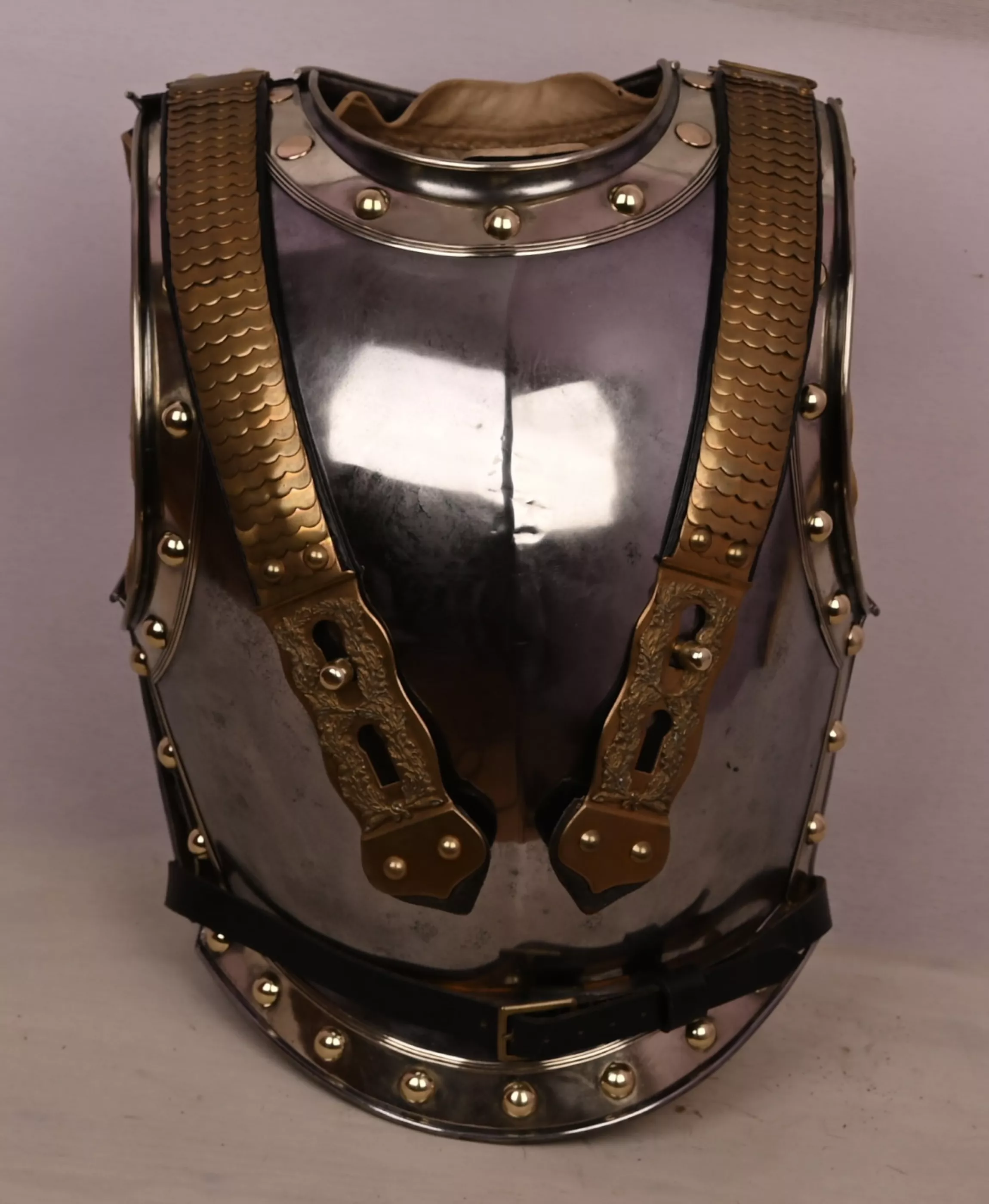Elegant Prussian Officer's Kurass for Line Regiments. Ultra light construction that was used for Parade Dress purposes. Highly polished steel front and back plate. Both plates have their original waffled tissue lining. The front plate is made of light steel polished to high finish. Please note a few small dents visible tin the middle only. The remaining of the plate is without dents or damage. Both plates have been professionally polished to their original shine. The Gilded brass scaled straps have kept their initial patina. The leather of the belt and straps has also been professionally restored. A fantastic and beautiful ensemble that is rarely seen in the marketplace today