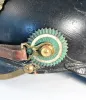 Frontplate is the Prussian style brass Eagle with FUERST banner and the silver star and Saxon crest surround on both sides by laurel leaves. The frontplate is secured to helmet body by screws and nuts (See pictures). Original leather chinstrap. Original Reichs AND State Cockade (Rare). This helmet is in excellent condition. Beautiful example of a Rare Regimental helmet. NOTE: the Back visor is marked with "6.TH.JR.95"on one side and "B.A.IV" on the other. We believe this is actually a true Infantry Regt 153 (8th Thuringisches) pickelhaube because the B.A IV is a definite original stamp. But we remain sceptical in regards to the 6.TH.JR.95 markings. Looks good...but never seen. Priced accordingly.