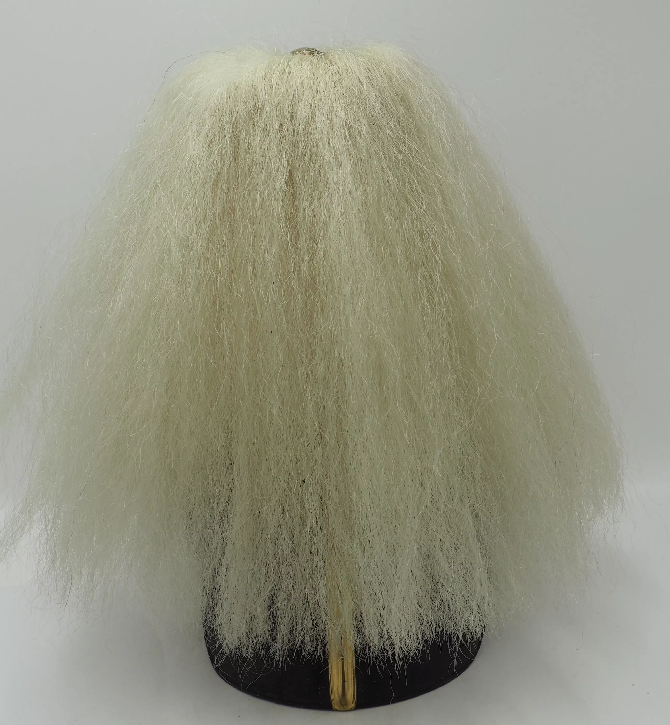 Bavarian Chevauxleger (Light Cavalry) Regiments 1,3,5 and 7 - Officer Model with white Yak hair parade plume – Model 1897. Fine leather helmet body and with squared front visor and gold metal trim. Black lacquered leather helmet body with gilded trim. No extra holes in helmet body. Helmet exterior lacquer in near mint condition. The helmet interior has mint sweat leather and silk headliner.