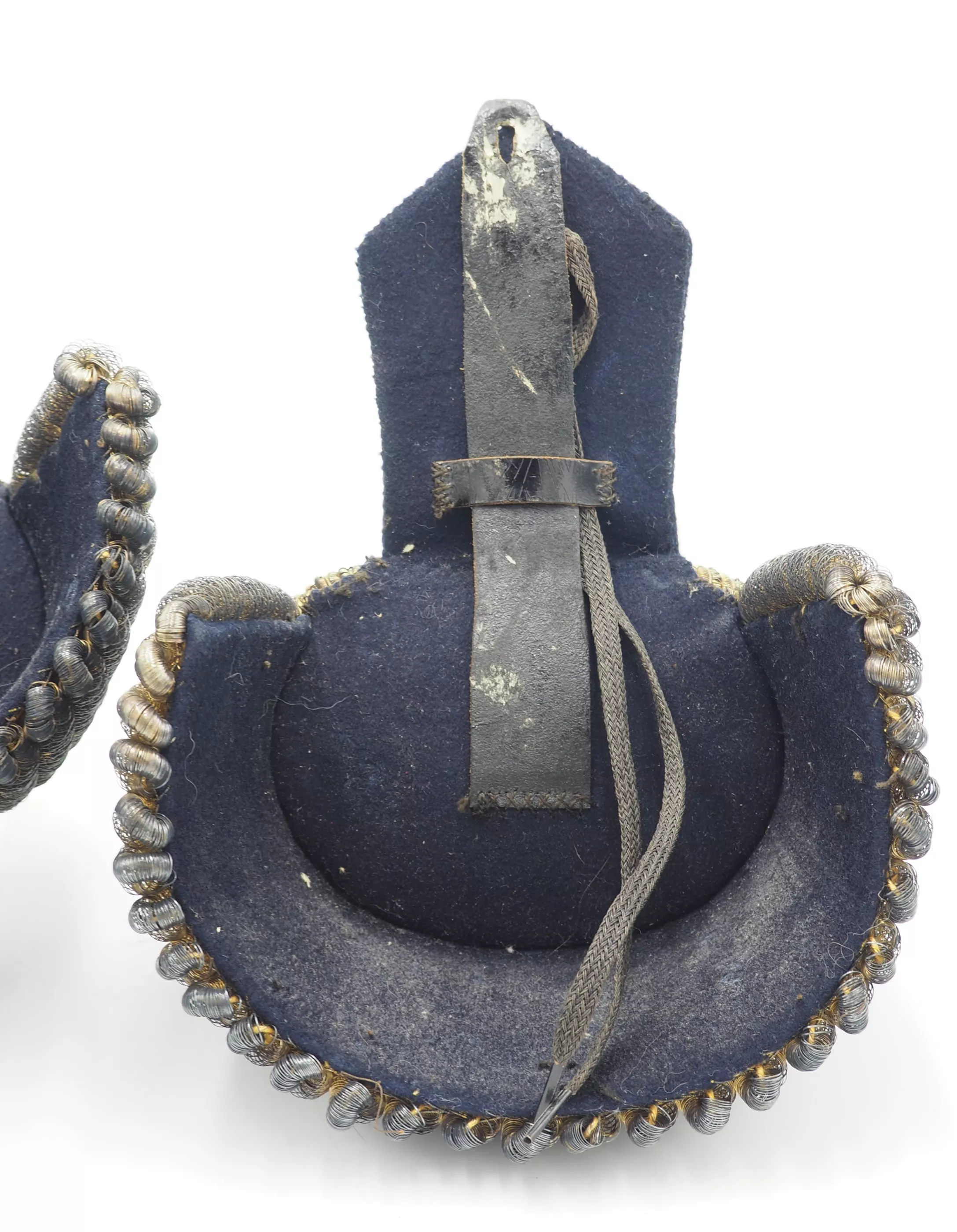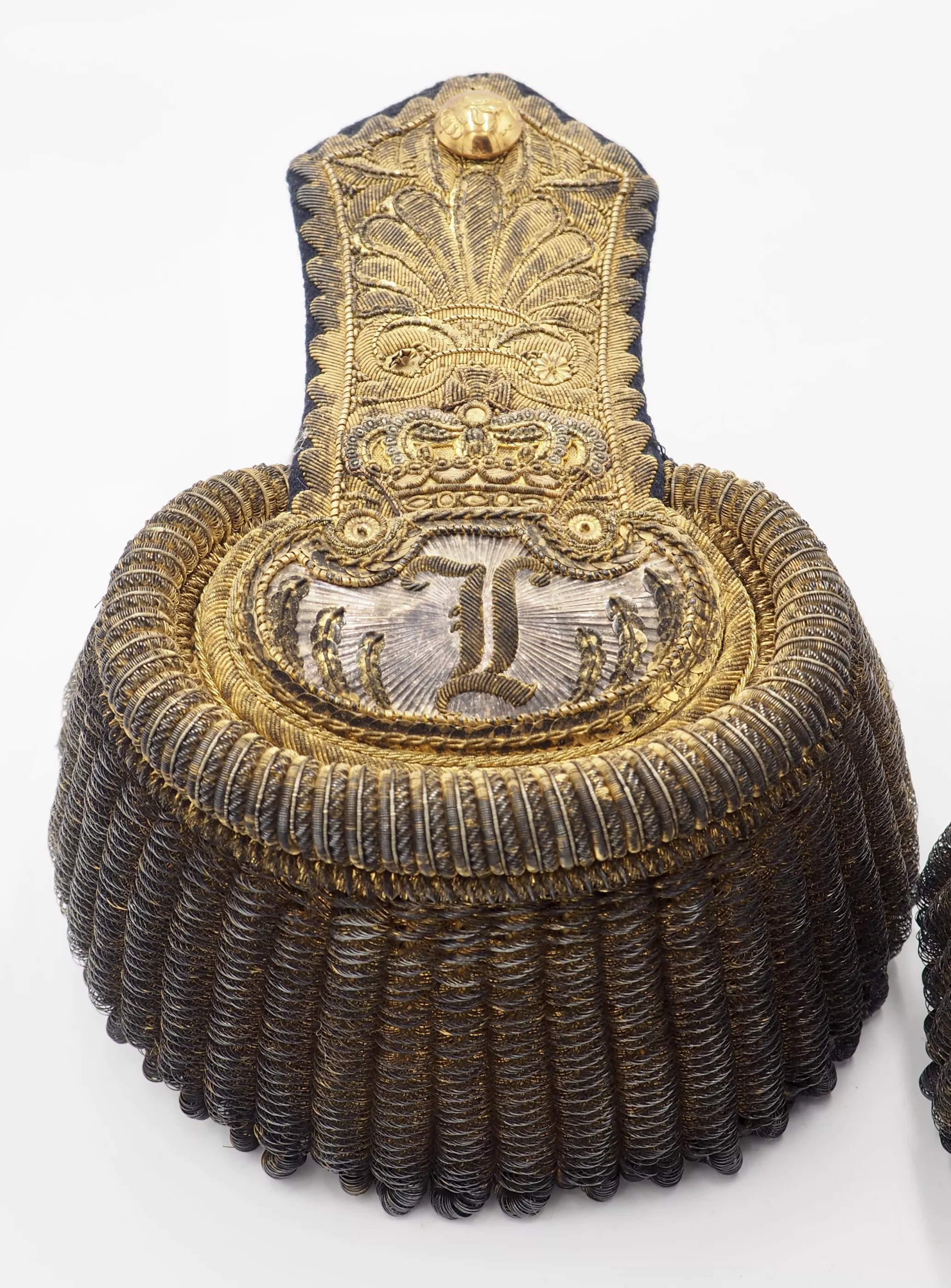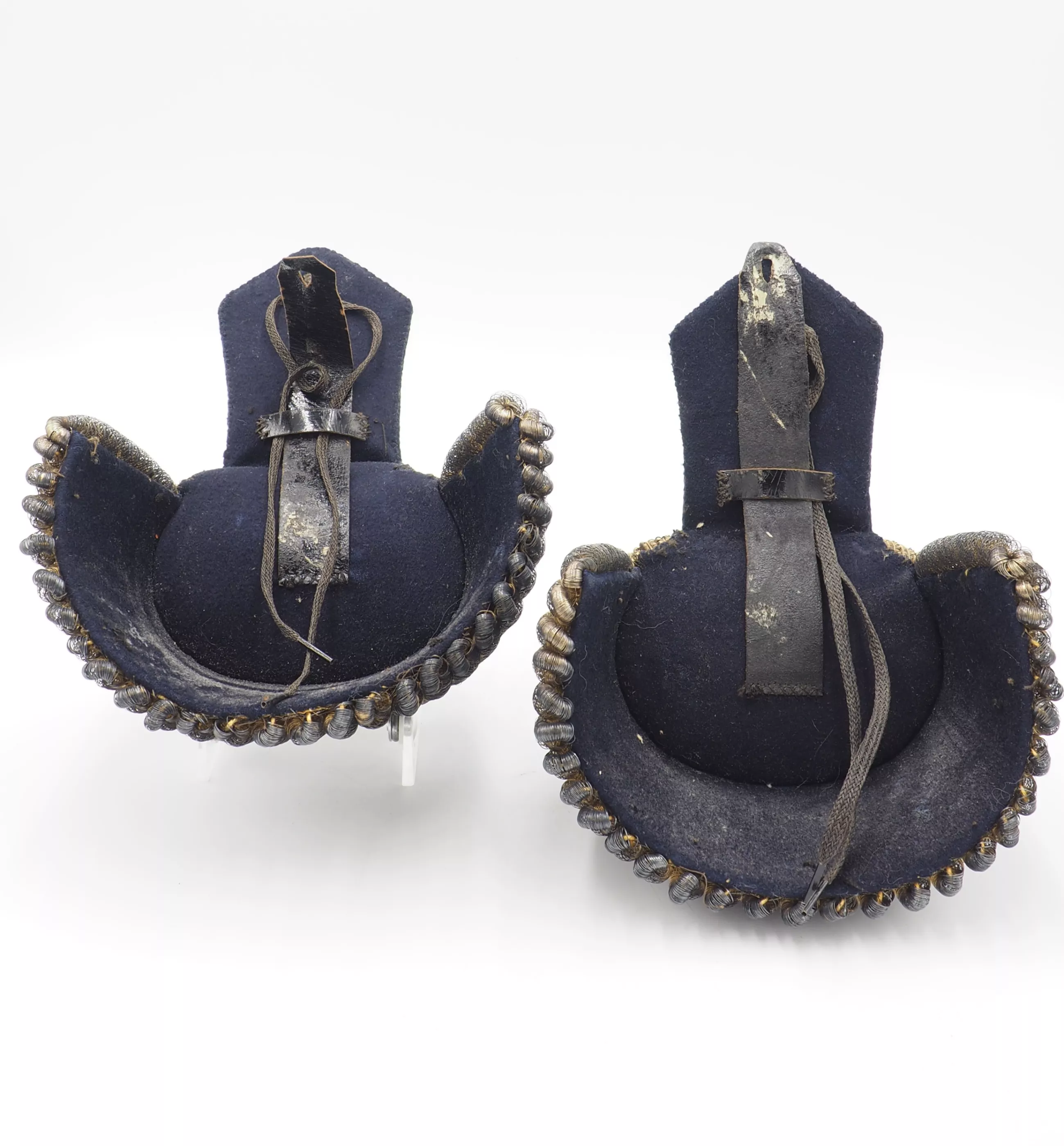 Bavarian Circa 1913. Large epaulettes with finely fluted gold fields and Gold Bullion moons. Hand-embroidered with the "L" for Ludwig the 3rd and Bavarian Crown in the center. Dark blue backing surrounding. Overall Near Mint to Mint condition.