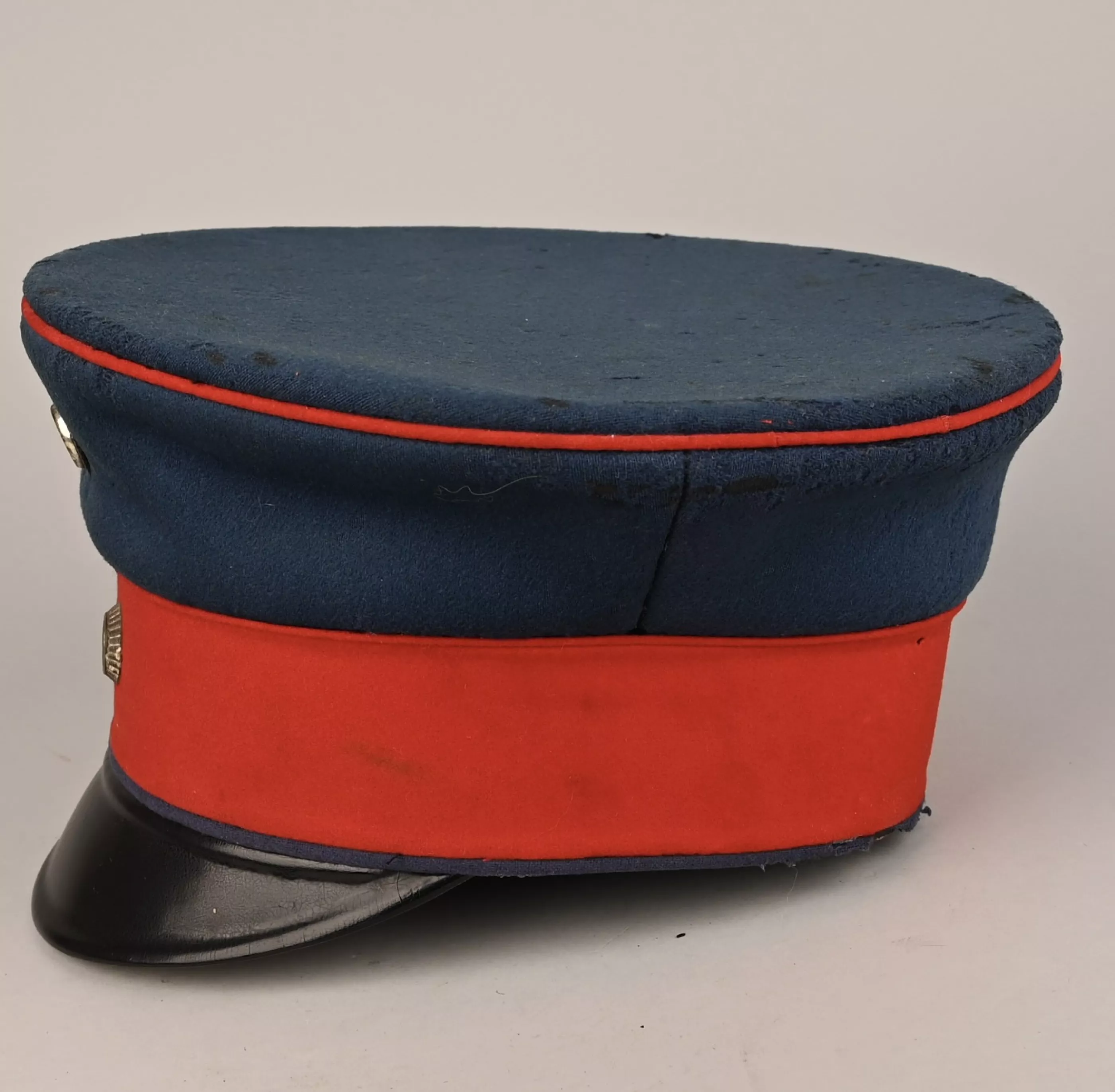 Tall version "Schirmmutze" for a Bavarian Officer. Inside the Black silk lining are his Initials "W.M" and the Baronial or Freiherr Krone. Dark blue Visor with some moth damage (see pictures) and red band/piping. Overall shape of the visor is excellent. Black visor, white underneath. Both Reichs and Bavarian Cockades.