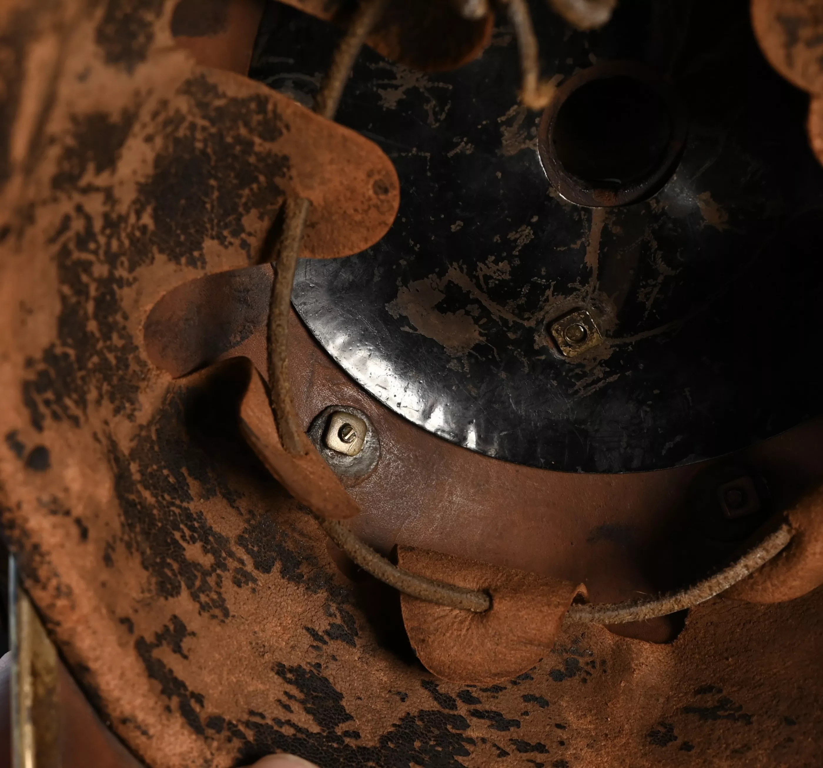 This helmet came from an old Collection and we took all the pictures necessary for the collector to make up his own mind in regards to the medalion. The few original medalions that we have encountered so far were "Stamped out" in German Silver. This one is of excellent quality but filled in the back, maybe cast, or simply spamped out and filled again? We believe it to be an Old Copy as it is definitely NOT a Galvano or modern copy...