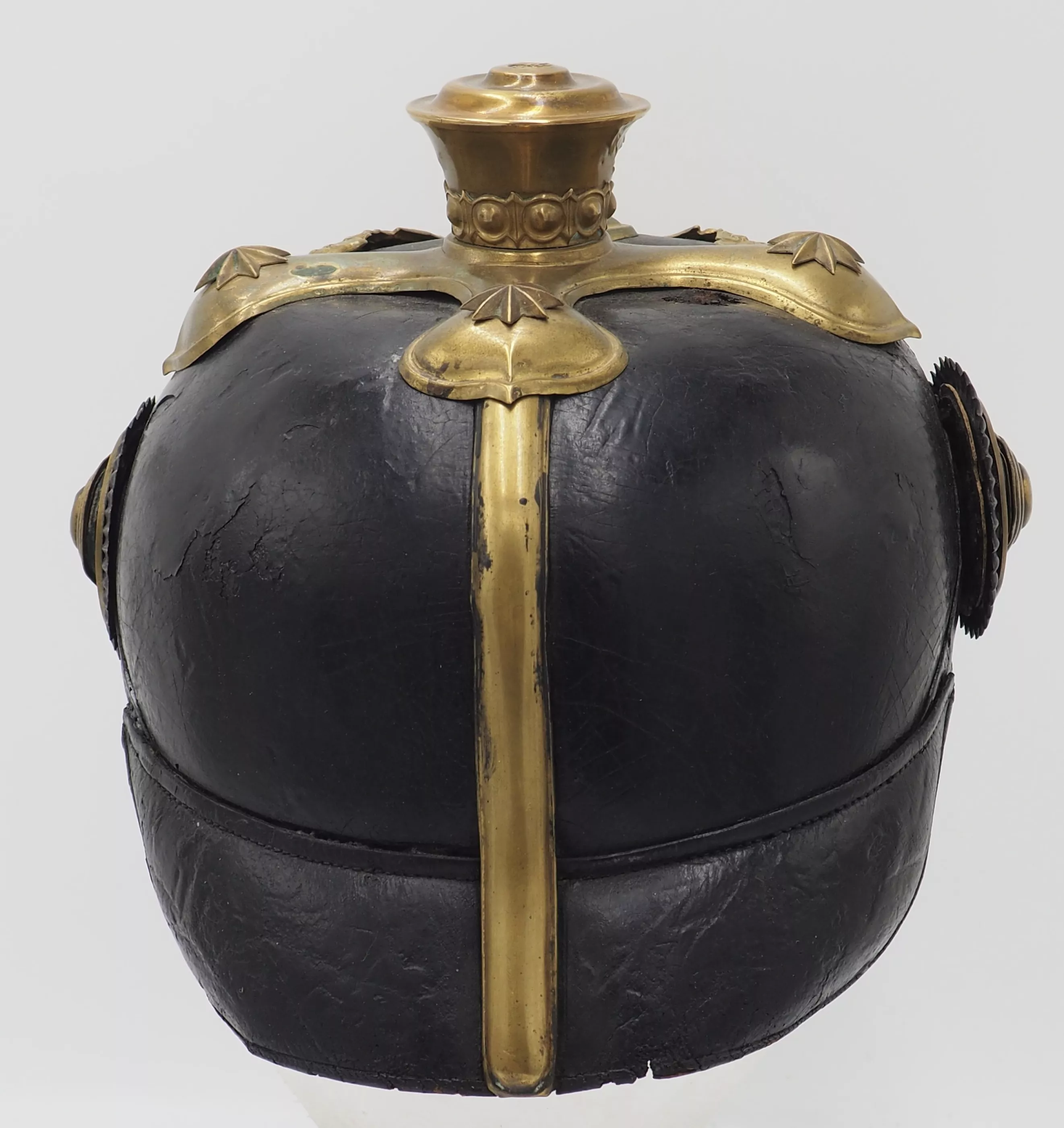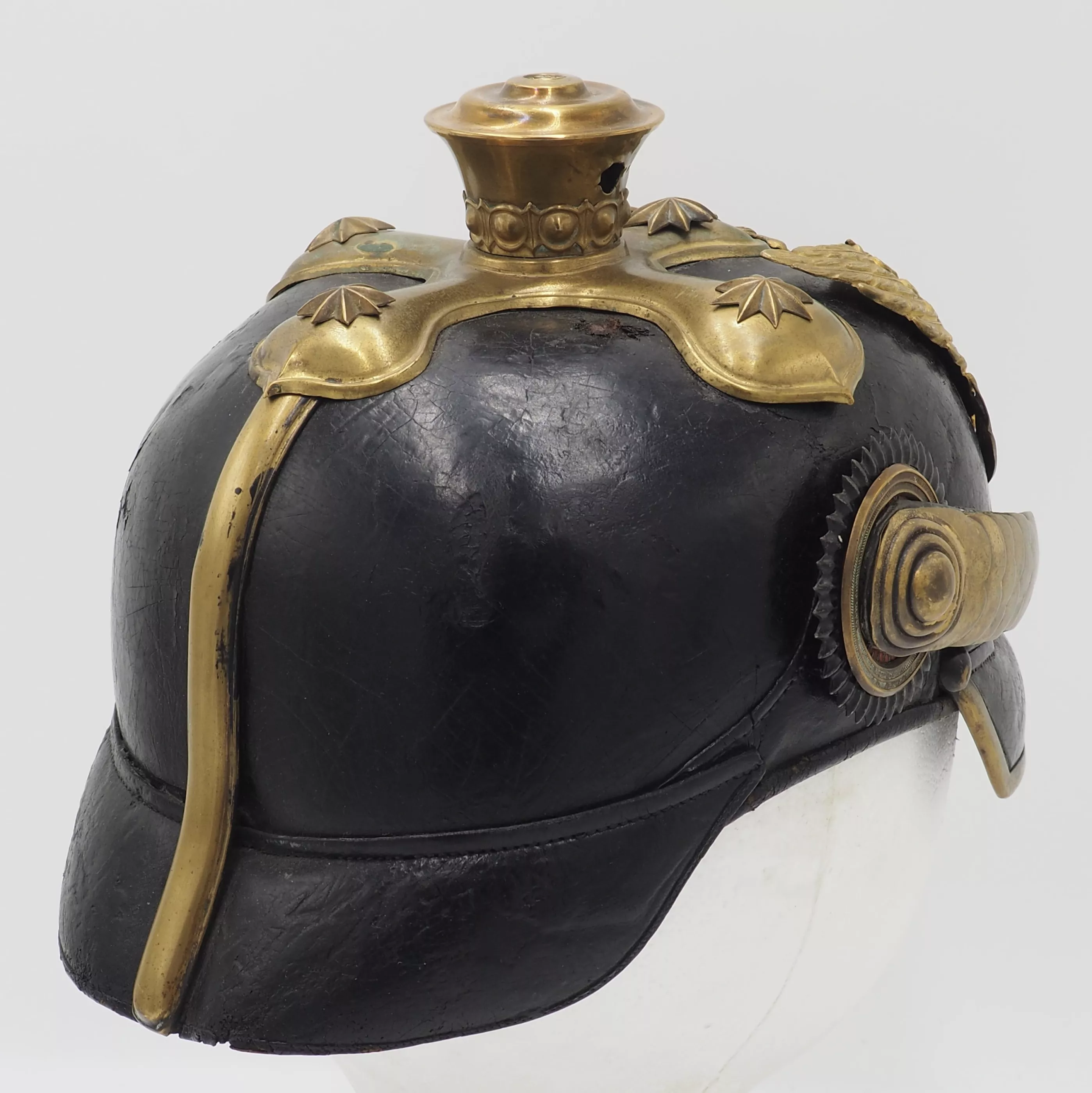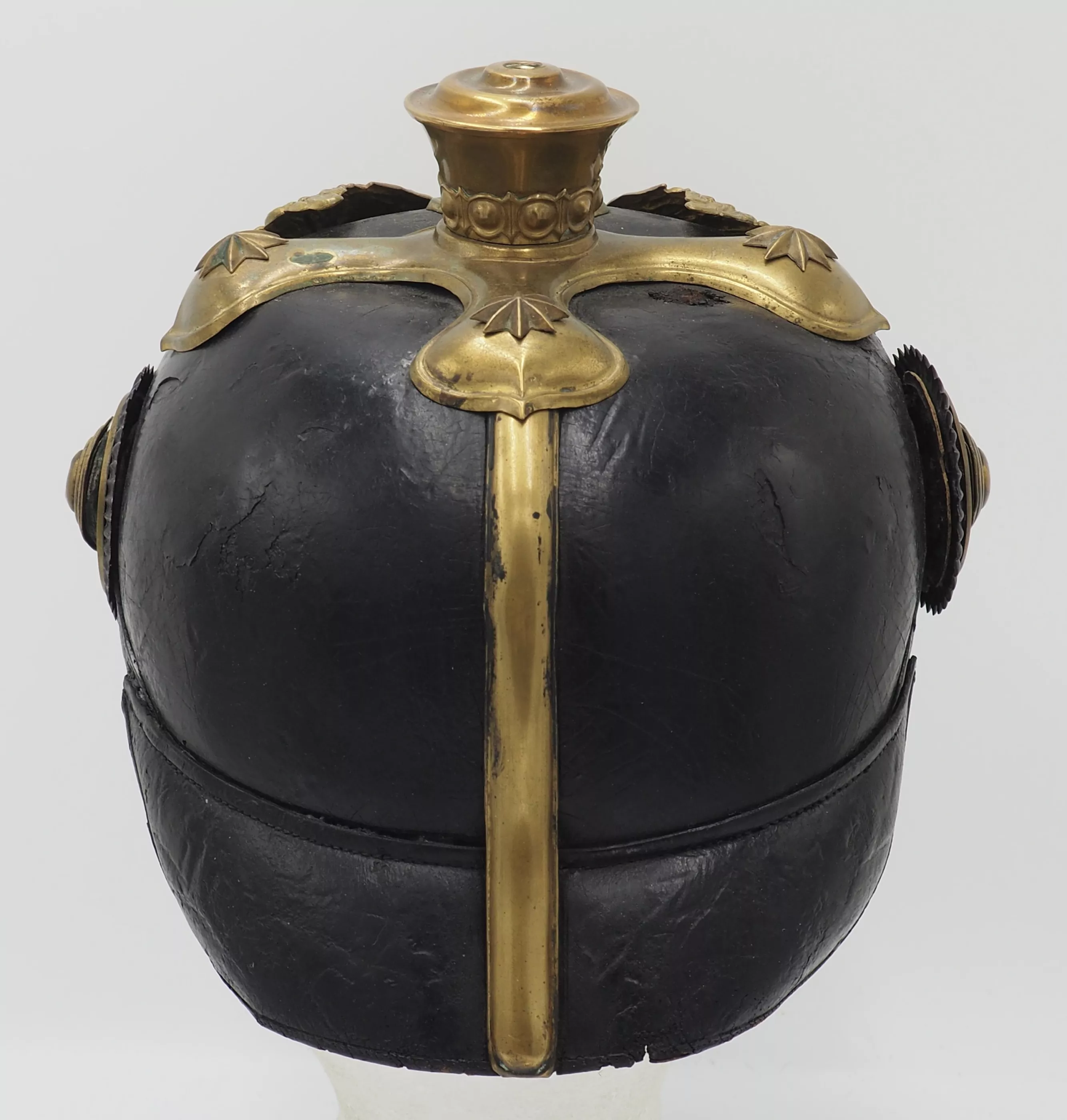 This helmet shows real age and use. It is a genuine and untouched Hannoverian 9th Dragoon officer. Bargain priced.